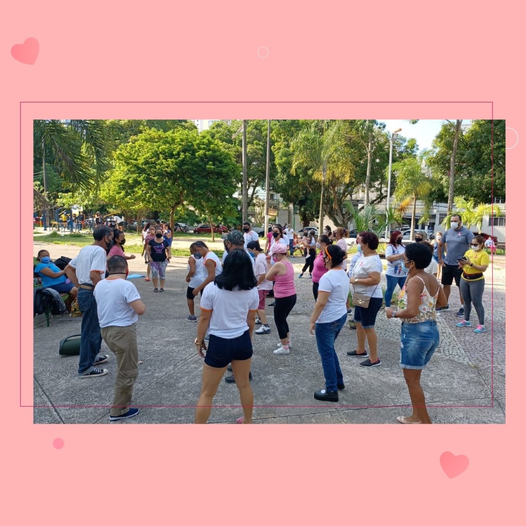 A ação, que contou com exercícios de alongamento, caminhada e aula de dança, marca a campanha de conscientização, sensibilização e alerta para o câncer de mama. O evento contou com a participação da professora de educação física Sabrina Araújo.