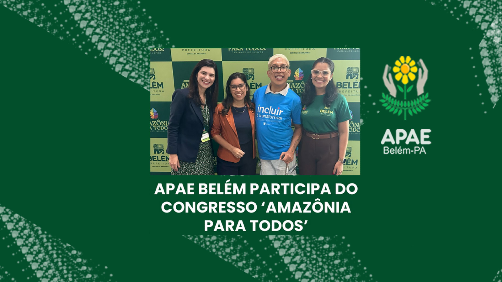 A Associação de Pais e Amigos dos Excepcionais (APAE) de Belém participou, no último domingo (21), do Congresso Amazônia para Todos: Caminhos Inclusivos, realizado no Hangar – Centro de Convenções da Amazônia, em Belém. O convite para integrar o evento partiu da Secretaria Municipal de Inclusão e Acessibilidade (SEMIAC).