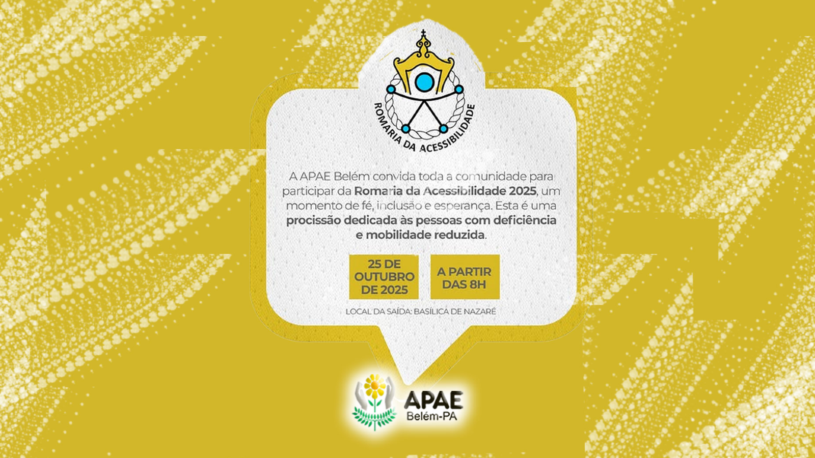 No próximo 25 de outubro, a APAE Belém convida você para participar da Romaria da Acessibilidade, um momento de fé, devoção e inclusão.