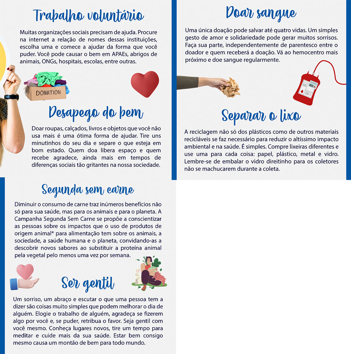 Antes mesmo de cobrar do outro, é necessário ser o próprio exemplo. Comece a mudança pelo que está mais próximo de você, ao seu alcance e deixe que as atitudes influenciem todos ao seu redor.